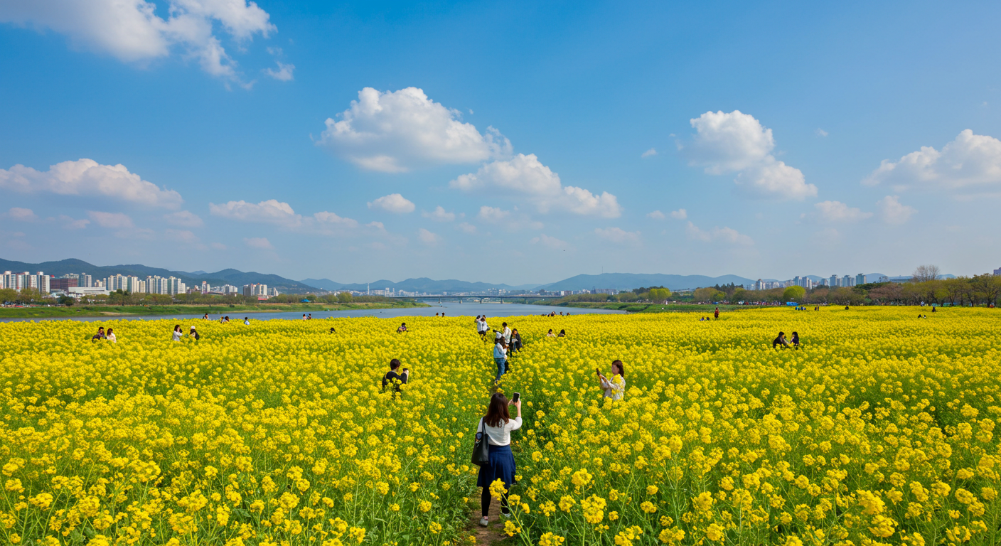 노란 유채꽃 물결 사이에서 인생샷을 건질 수 있는 최고의 봄여행지예요! 📸