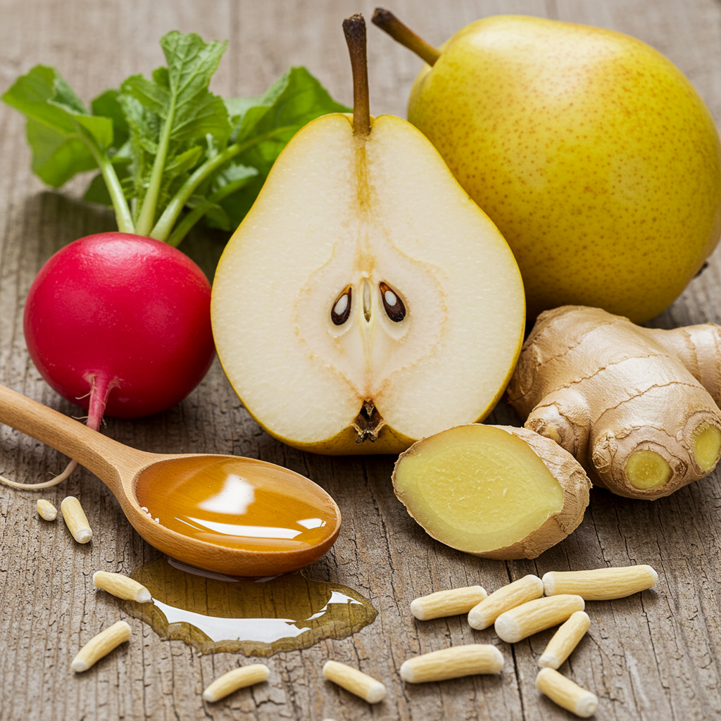 기침, 가래, 기관지염에 효과적이에요. 배를 갈아 꿀과 함께 먹으면 더욱 좋답니다.