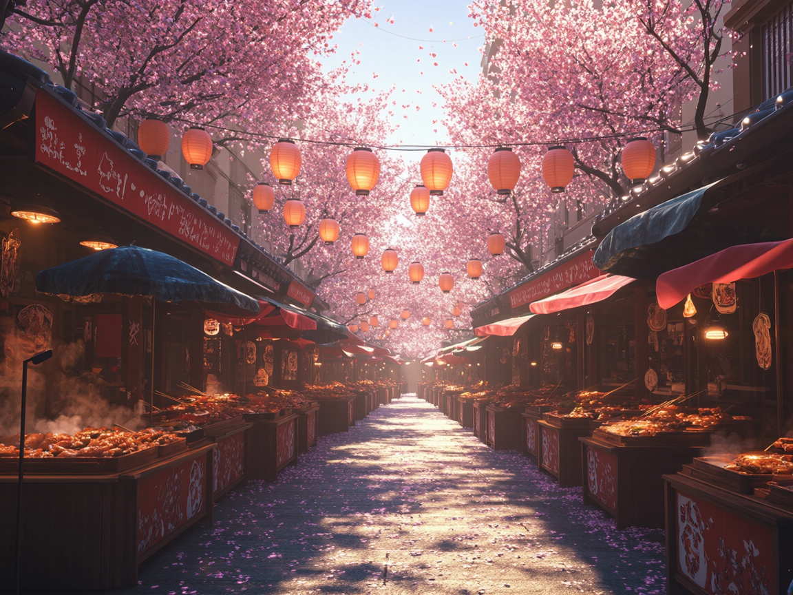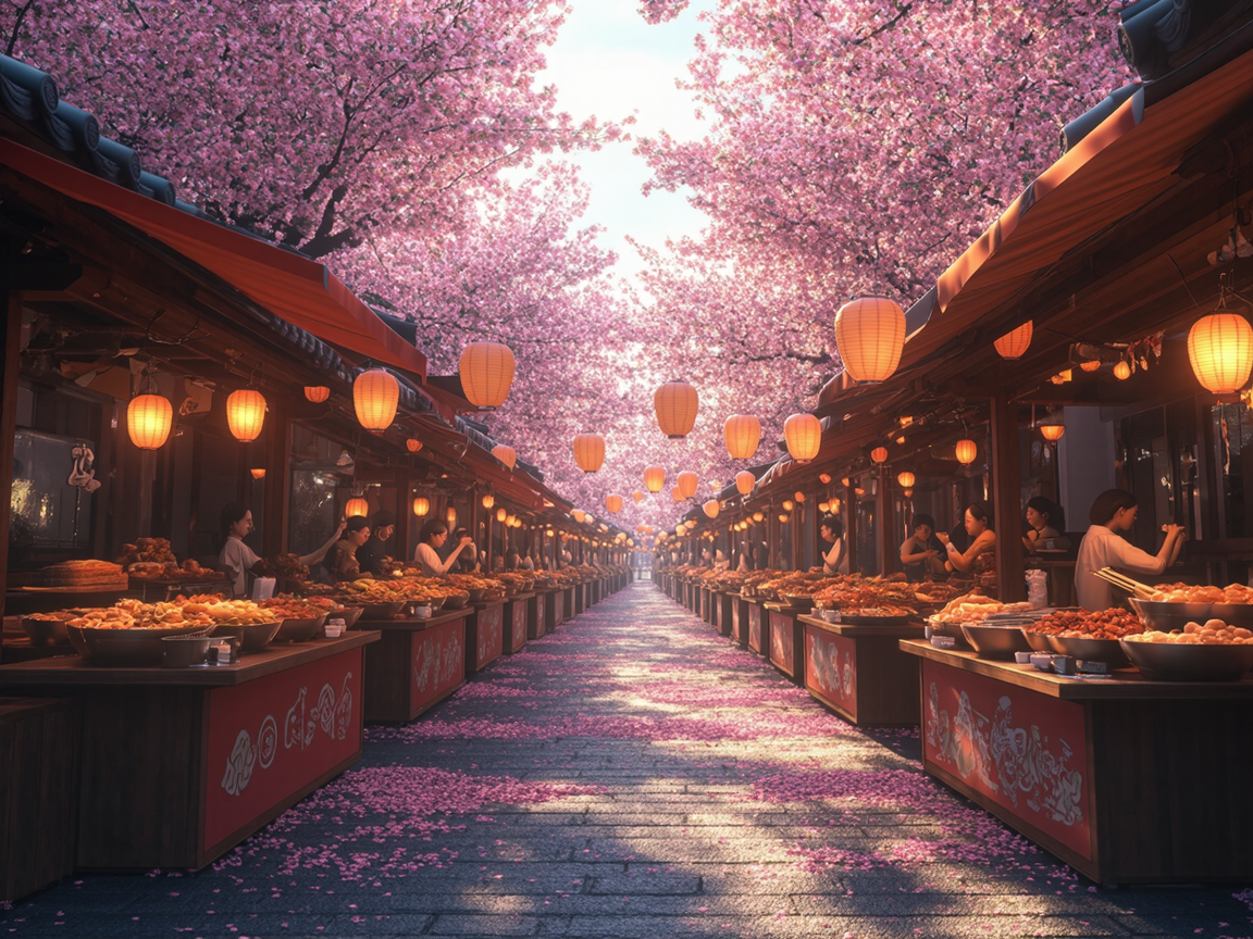 길거리에서 판매되는 달콤한 벚꽃 모양의 간식과 지역 특산물을 맛보는 것도 추천합니다.