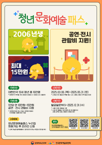 청년 문화예술패스는 문화체육관광부와 한국문화예술위원회가 함께 추진하는 문화지원 사업으로,